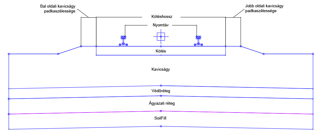 | Talajkitöltés túlnyúlása | Az ágyazati réteg anyaga lábazatától a talajkitöltés anyaga oldalesésének elejéig tartó távolság | Numerikus, nem negatív |