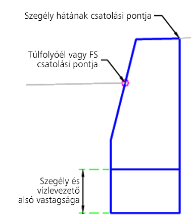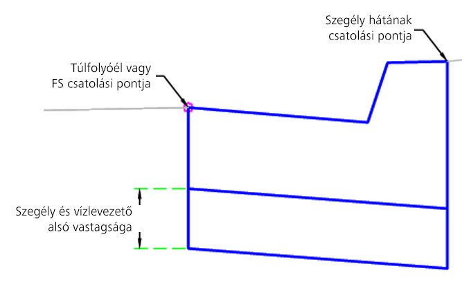 A kezdeti pont a csatolási pontnál található. A szegély és vízlevezető pontjait, csatolásait és alakjait a rendszer a kiválasztott szegélytípus alapján hozza létre. A rendszer ezt követően elhelyezi az alapot a szegély és a vízlevezető alá.