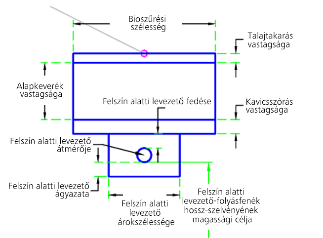 | Felszín alatti levezető folyásfenekének hossz-szelvénye | A felszín alatti levezető rögzített folyásfenék-magasságának felülírására használható. A szintmagasság megadása a következő objektumtípusok esetében lehetséges: hossz-szelvények, 3D vonalláncok, vezérlővonalak és földmérési alakzatok. | Választható |