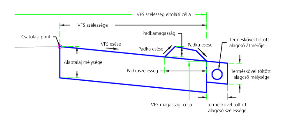 | VFS szintmagassága | Ezzel felülbírálható a vegetációs szűrősáv, és a szintmagasság egy hossz-szelvény szintmagasságához köthető. A szintmagasság megadása a következő objektumtípusok esetében lehetséges: hossz-szelvények, 3D vonalláncok, vezérlővonalak és földmérési alakzatok. | Választható |