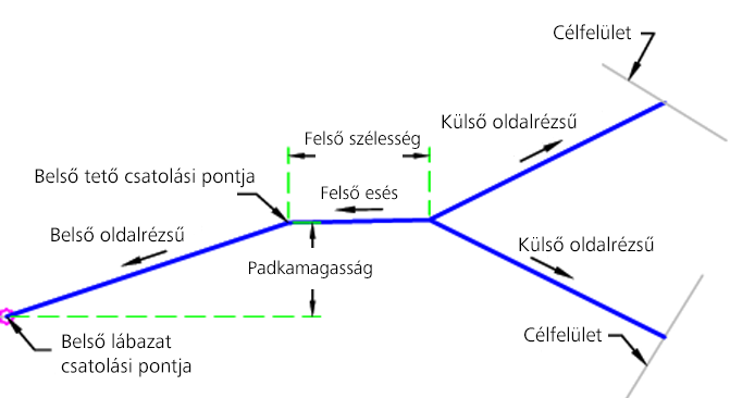 | Csatolási pont | A csatolási pont, amelyből a padkát létrehozza a program. | Belső lábazat / Belső tető | Belső lábazat |