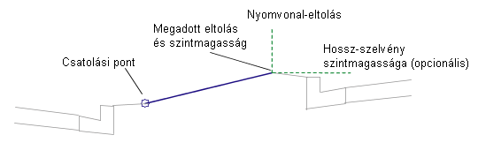 Ezzel felülbírálható a rögzített Magasság, és a kapcsolódás vége egy eltolási nyomvonalhoz köthető. A szintmagasság megadása a következő objektumtípusok esetében hajtható végre: hossz-szelvények, 3D vonalláncok, vezérlővonalak és földmérési alakzatok. |