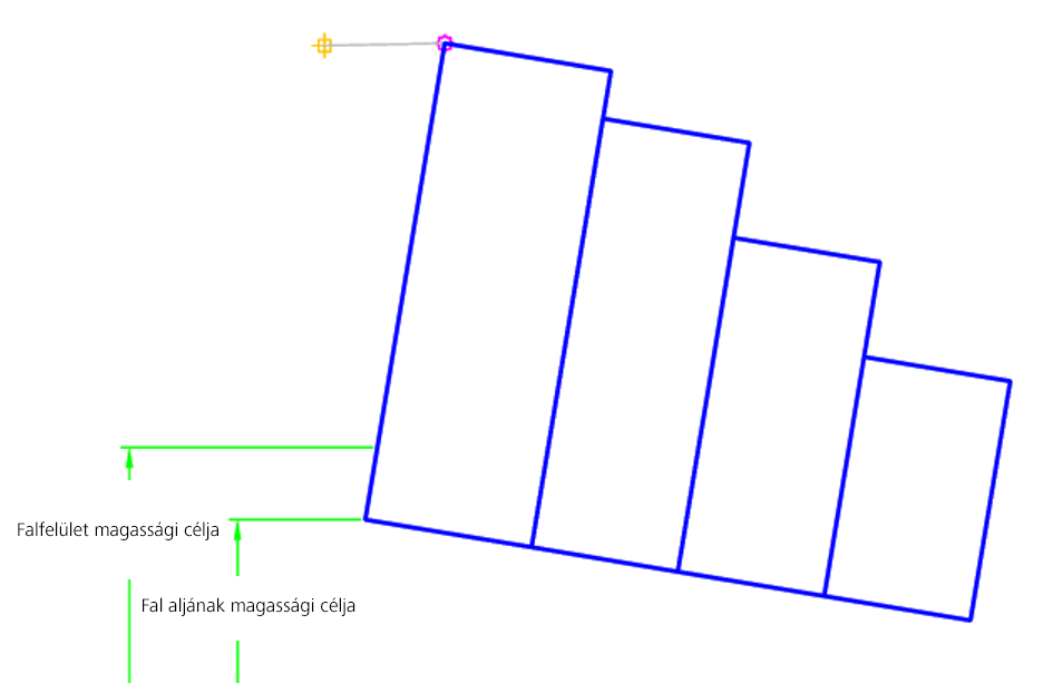| Fal teteje | Beállítható vele a fal tetejének szintmagassága. A szintmagasság megadása a következő objektumtípusok esetében lehetséges: hossz-szelvények, 3D vonalláncok, vezérlővonalak és földmérési alakzatok. | Opcionális (Csatolási pont = A fal felülete) |
