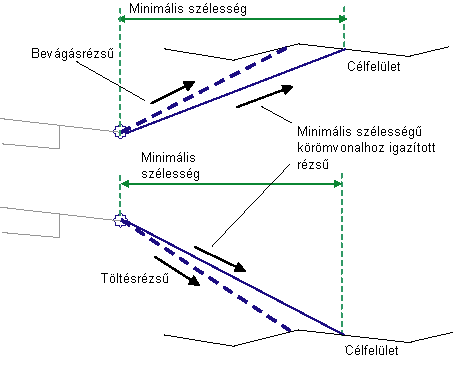 Ha nyomtervmodellezés során a Minimális szélességhez egy vízszintes eltolási nyomvonal kerül hozzárendelésre, akkor a Minimális szélesség értéke a nyomvonal eltolásához igazodik.