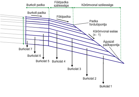 | Körömvonal esése | Hossz-szelvény, amely meghatározza az ágyazat padkapontjának szintmagasságát. A szintmagasság megadása a következő objektumtípusok esetében hajtható végre: hossz-szelvények, 3D vonalláncok, vezérlővonalak és földmérési alakzatok. | Választható |