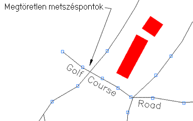 Zárt objektumok, mint például szintvonalak és folyók letisztázhatók a Metsző objektumok megtörése és a Szabad objektumok törlése műveletekkel. Különálló objektumok létrehozásához használja a Metsző objektumok megtörése opciót, majd a Rövid objektumok törlése opciót vagy a RADÍR parancsot. Győződjön meg arról, hogy az így létrejött alakzat hűen tükrözi-e a kívánt formát és nem jött-e létre torzult, zárt terület.