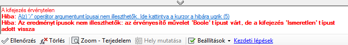 A kifejezések mentésekor a program mindig ellenőrzi azok érvényességét. Az érvényesség a kifejezések mentése előtt is ellenőrizhető.