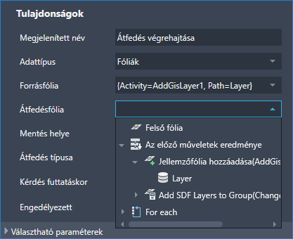A sorozatos művelet gyakran egy előző művelethez van csatolva. Művelet csatolásakor állítsa be a paramétert úgy, hogy az az előző művelet eredményeként szerepeljen. Használhatja például egy olyan művelet kimenetét, amely létrehoz egy fóliát a következő átfedési művelet forrásfóliájaként.