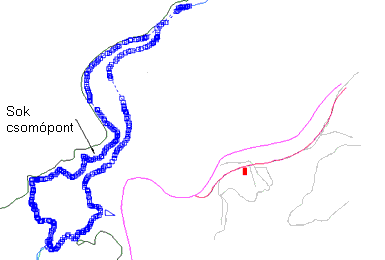 A vékony fekete vonal jelenti az eredeti vonalláncot, a szaggatott vörös vonalak a tűrést, a kék vonalszakaszok és pontok pedig az eredményeket mutatják.