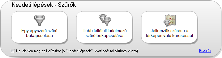 Ahhoz, hogy ezek az indítógombok ne jelenjenek meg a kifejezések létrehozásakor, jelölje be a Ne jelenjen meg az indításkor jelölőnégyzetet. Később a Kezdeti lépések gombra kattintva ismét megjelenítheti ezeket.