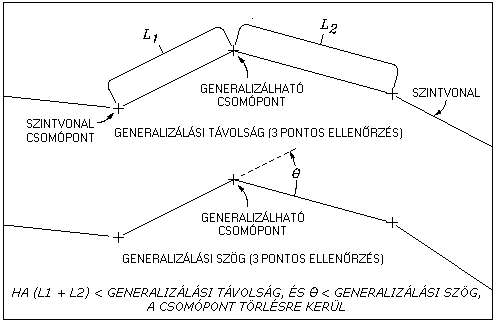 Egy 3D vonallánc egy pontjának helye az előtte és utána lévő pont helye alapján kerül generalizálásra. Ha ezen három pont közötti hossz kisebb, mint a generalizálási hosszérték, és a hajlásszög kisebb, mint a generalizálási szögérték, a közbenső pont nem kerül hozzáadásra a szintvonal adatfájlhoz.