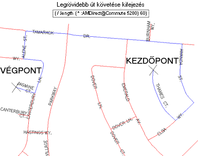 A kapott elemzés azt mutatja, hogy melyik útvonalon lehet a legrövidebb idő alatt eljutni az egyik ponttól a másikig – tehát a szempont az idő, és nem a távolság.