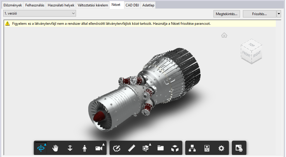 A verziócsúszka segítségével megtekinthetőek a látványtervfájl előzményei.