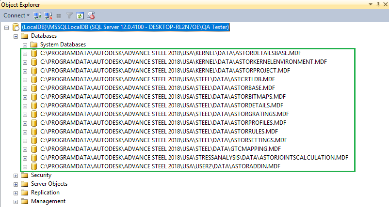 To view and edit the contents of an Advance Steel database, you first need to attach it in SQL Server Management Studio.