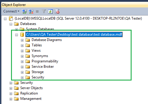 The attachment process can be validated and the copied database will be available for editing in SQL Server Management Studio: