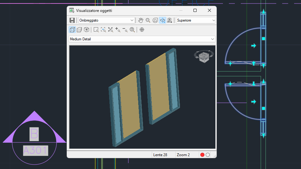 Finestra di dialogo modeless: con la finestra di dialogo Visualizzatore oggetti aperta, è possibile accedere alla finestra di disegno, alla barra multifunzione e ad altre parti dell'applicazione.