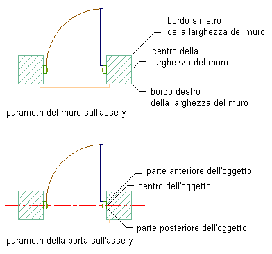 | Utilizzare il centro del muro come punto di riferimento | Impostare Da su Centro della larghezza muro (curva). |