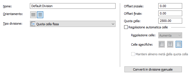 Per definire dimensioni specifiche per le celle di una griglia, attenersi alla procedura indicata di seguito. In questo caso, il numero di celle è determinato dalla lunghezza o dall'altezza della griglia, a seconda del modo in cui la griglia è divisa.