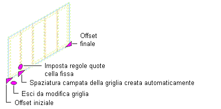 Cambiare l'offset finale della griglia | Selezionare il grip Offset finale e spostarlo nella posizione appropriata. |