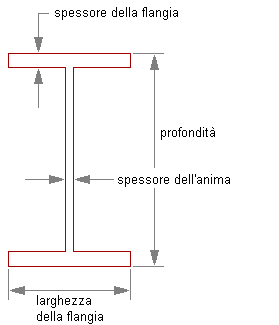 Parametri sezione trasversale per forma strutturale a flangia larga