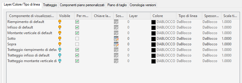 Per specificare le proprietà di uno o più piani di taglio per uno stile di assieme porta/finestra, attenersi alla procedura descritta nella presente sezione. Le proprietà di visualizzazione del piano di taglio si applicano solo per visualizzare le rappresentazioni, ad esempio Piano, utilizzate nella vista dall'alto (vista piana) di un disegno.