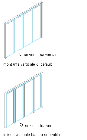 Definizione di montanti verticali di assieme porta/finestra di default e basati su profili