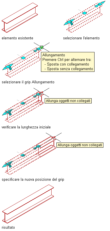Modifica della lunghezza di un elemento strutturale trave mediante i grip