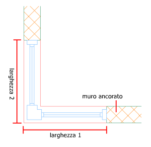 - Larghezza 2: la Larghezza 2 è la larghezza di apertura del secondo muro specificato quando si inserisce una finestra ad angolo.