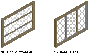 Ogni griglia di un assieme porta/finestra ha un'assegnazione di divisione che determina se la griglia è divisa orizzontalmente o verticalmente. La divisione determina inoltre il numero di celle, come pure la dimensione e la posizione delle stesse.