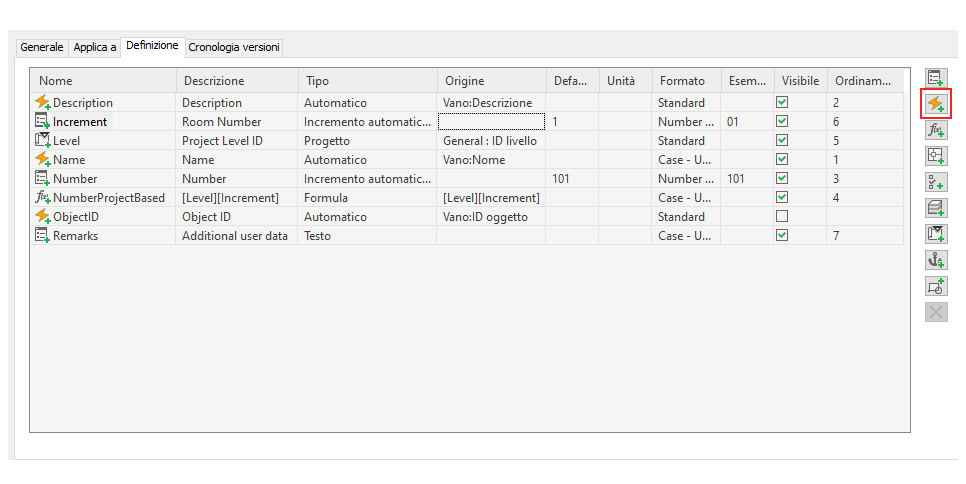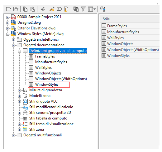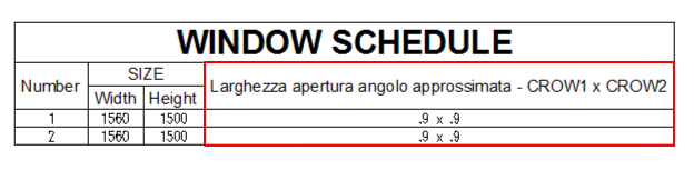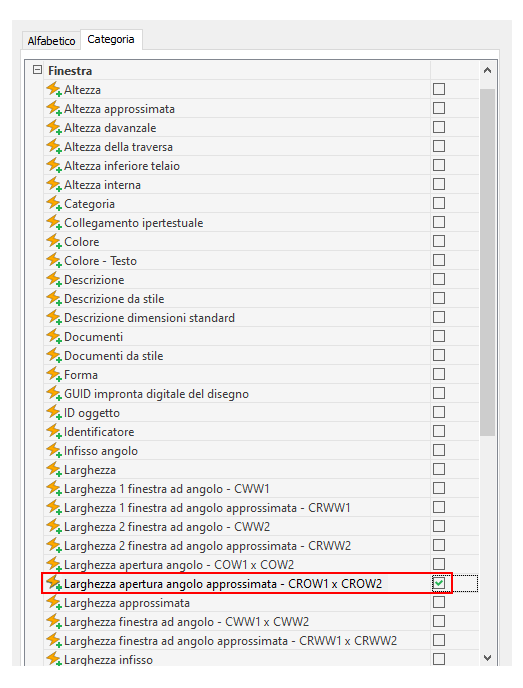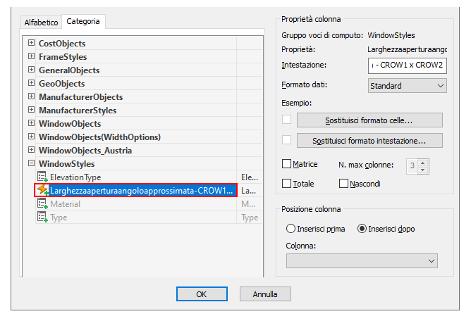 Per modificare le proprietà automatiche generate nel computo della finestra, effettuare le seguenti operazioni: