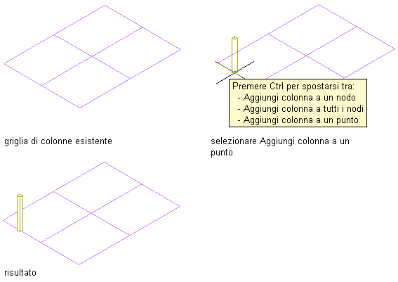 | Aggiungere una colonna in corrispondenza di un determinato nodo della griglia | Spostare il cursore sul nodo o in prossimità del nodo e fare clic. Viene aggiunta una colonna al nodo più vicino alla posizione del cursore. |