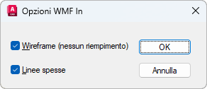 Importa gli oggetti come wireframe. Se si deseleziona questa opzione, gli oggetti vengono importati come oggetti con riempimento.