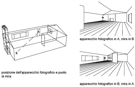 Definisce la proiezione parallela o le viste prospettiche utilizzando un apparecchio fotografico e un punto di mira.