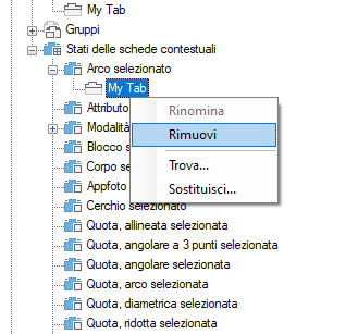 Rimozione di una scheda della barra multifunzione da uno stato della scheda contestuale