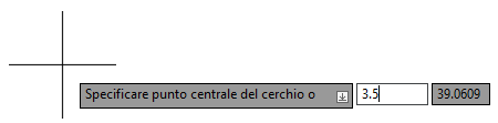 Quando si avvia un comando e se la funzionalità Input dinamico è attivata, il messaggio di richiesta principale del comando corrente viene ripetuto accanto ai puntatori a croce insieme a diverse descrizioni comandi che accettano l'input. Ad esempio, se si avvia il comando CERCHIO, in AutoCAD viene richiesto di specificare un valore di coordinata per definire il punto centrale del cerchio.