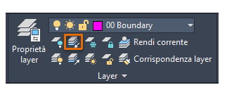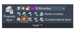 Sulla barra multifunzione, fare clic sullo strumento Isola nella scheda Inizio, gruppo Layer. In alternativa, immettere ISOLAY nella finestra dei comandi.