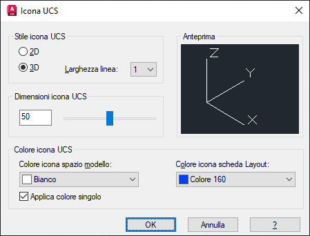 UCSICON | Controlla la visibilità, la posizione, l'aspetto e la selezionabilità dell'icona UCS. |