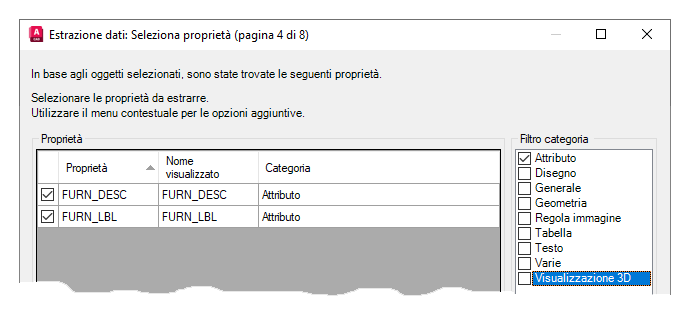 - In Filtro categoria, deselezionare tutte le opzioni, ad eccezione di Attributo e assicurarsi che le proprietà selezionate corrispondano ai valori degli attributi da estrarre.