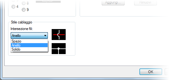 Quando un filo interseca un altro filo, può essere aggiunta una sequenza chiusa o uno spazio, come definito nella scheda Stili della finestra di dialogo Proprietà disegno.