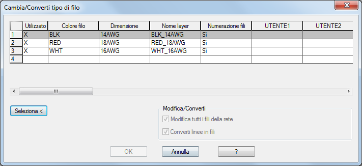 Utilizzare il comando Cambia/Converti tipo di filo per associare i fili ad un altro layer o convertire le linee in fili. Trova