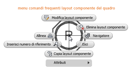 Verificare che l'area di lavoro corrente sia impostata su ACADE e Disegno 2D e Annotazione. Il menu comandi frequenti è un menu contestuale radiale. Posizionare il cursore del mouse su un oggetto elettrico e fare clic con il pulsante destro del mouse. Le opzioni del menu variano a seconda del tipo di oggetto su cui si trova il cursore.
