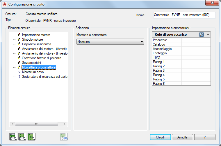 Utilizzo di Generatore di circuiti per l'inserimento e la configurazione di un circuito motore trifase.