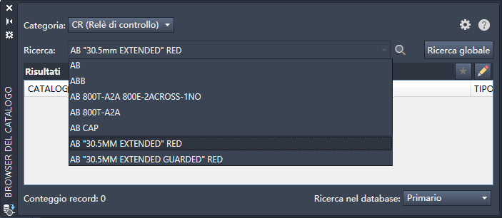 Se si inizia da un elenco di componenti per un progetto e si conoscono già i numeri parte, è possibile inserire un componente selezionandolo dal database di catalogo. Utilizzare la tavolozza del Browser del catalogo per inserire i componenti dal database di catalogo. Trova