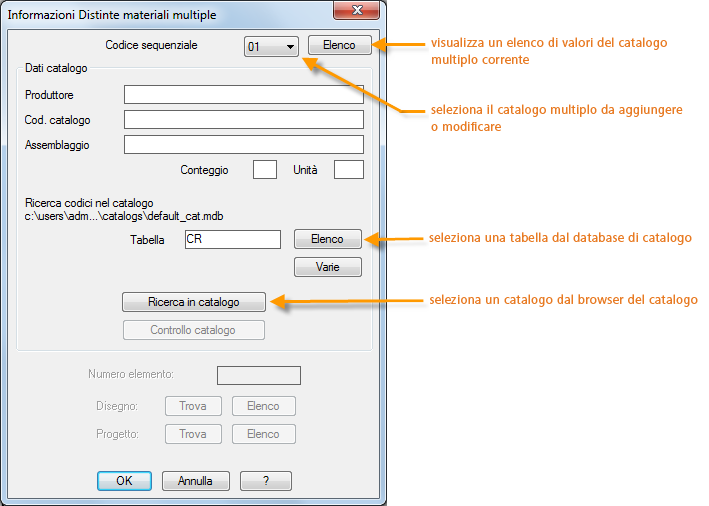 Fare clic su Cod. catalogo multiplo per aggiungere, modificare o rimuovere altri valori di catalogo per il componente.