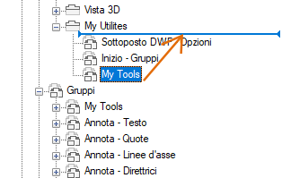 Tra i gruppi della barra multifunzione, viene visualizzato un indicatore nella posizione in cui verrà inserito il gruppo al rilascio del pulsante del dispositivo di puntamento.
