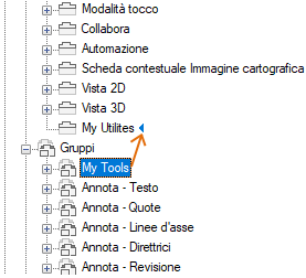 Utilizzare l'indicatore visivo per specificare la posizione del gruppo della barra multifunzione nella scheda della barra multifunzione.