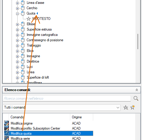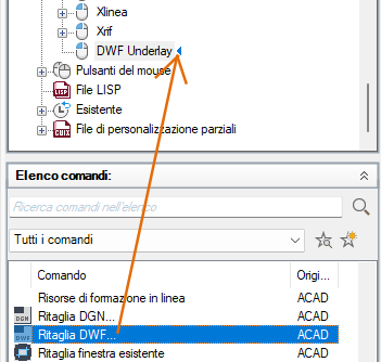 5. Se si desidera sostituire il comando corrente assegnato all'azione doppio clic, trascinare un comando dal riquadro Elenco comandi e rilasciarlo sull'azione doppio clic nel riquadro Personalizzazioni in <nome file>.