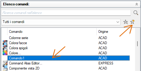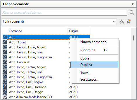 L'elenco viene filtrato in modo da visualizzare solo i comandi definiti dall'utente che sono stati aggiunti ai file di personalizzazione caricati.