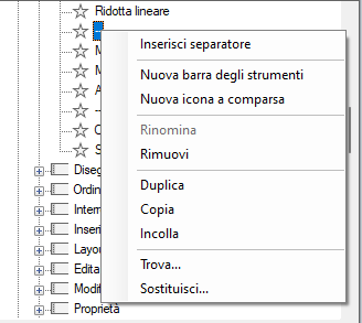 - Nel riquadro Elenco comandi della scheda Personalizza, individuare il comando da duplicare.