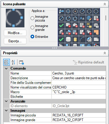 Selezionare un'immagine dall'elenco. Alla proprietà Immagine piccola, Immagine grande o ad entrambe le proprietà del comando selezionato verrà assegnato automaticamente il nome.